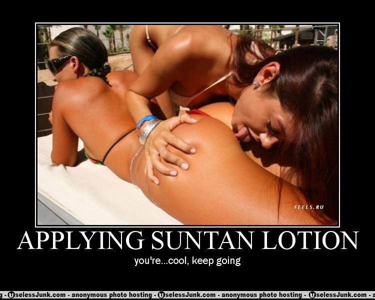 Motivational humour poster about applying suntan lotion